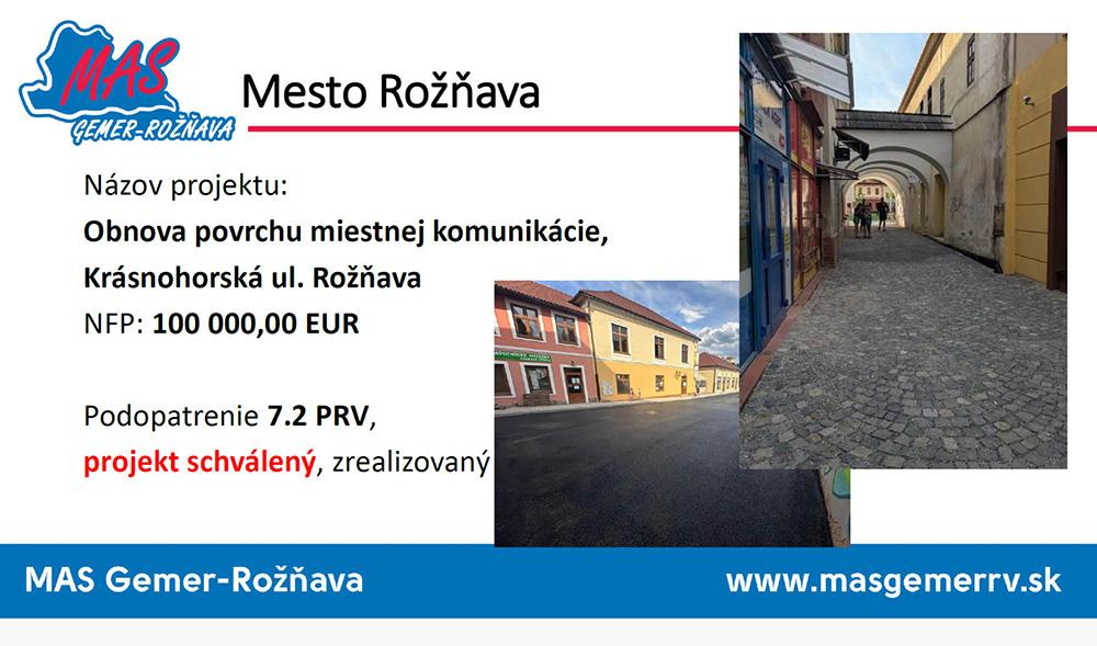Mesto Rožňava – Obnova povrchu miestnej komunikácie, Krásnohorská ul. Rožňava
