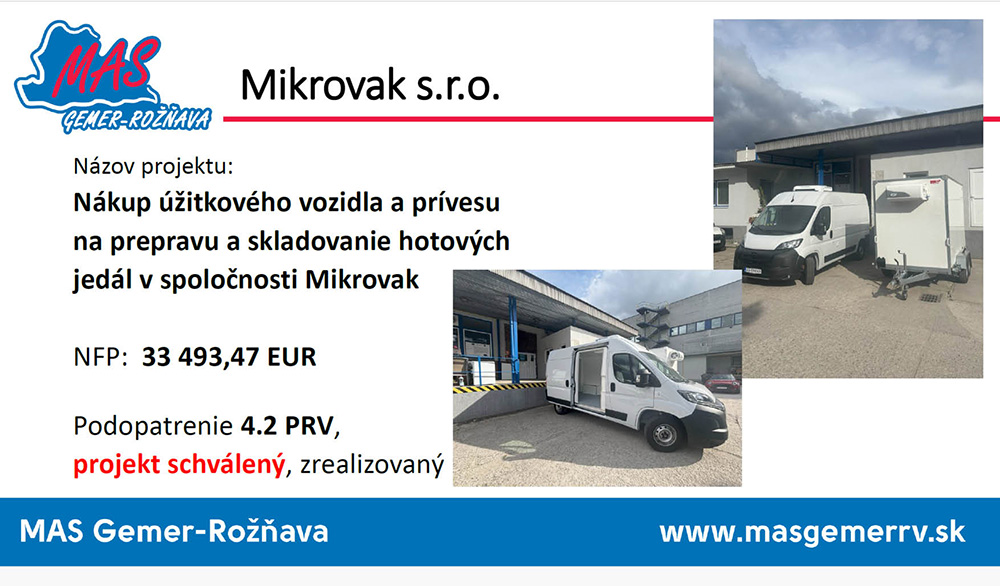 Mikrovak s.r.o. – Nákup úžitkového vozidla a prívesu na prepravu a skladovanie hotových jedál v spoločnosti Mikrovak