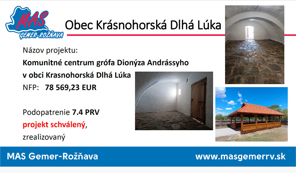 Obec Krásnohorská Dlhá Lúka – Komunitné centrum grófa Dionýza Andrássyho v obci Krásnohorská Dlhá Lúka